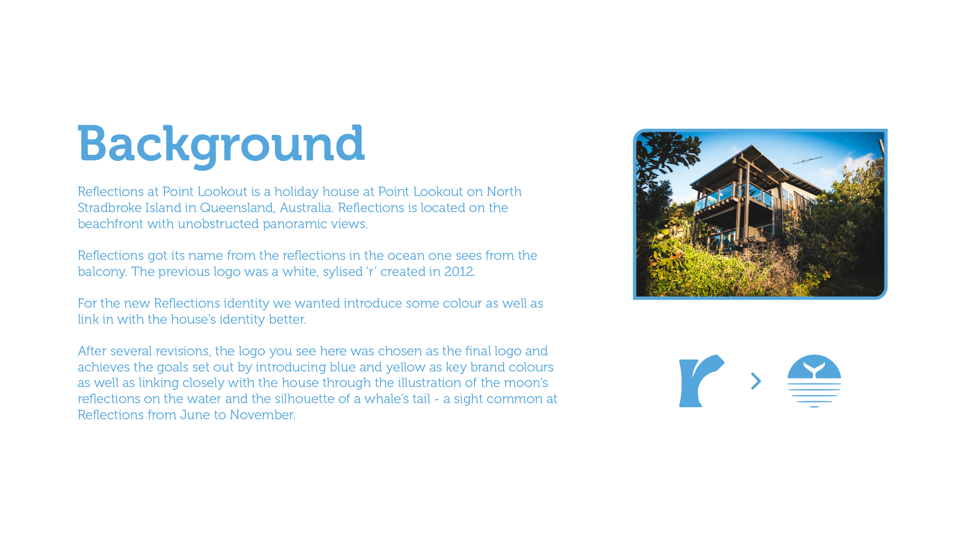 At the end of 2018 I completed a comprehensive rebrand of Reflections at Point Lookout, a luxury beach house at Point Lookout, North Stradbroke Island