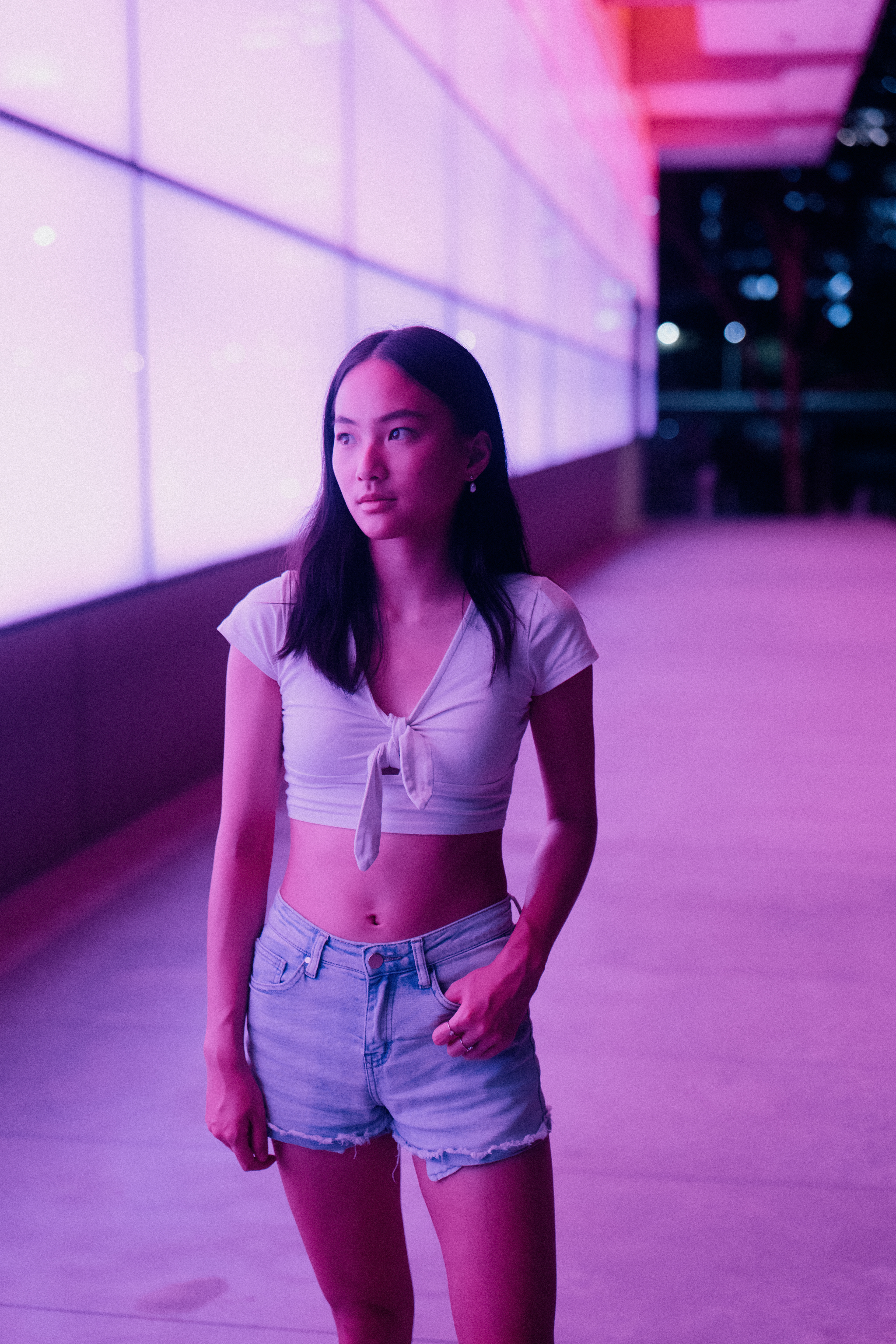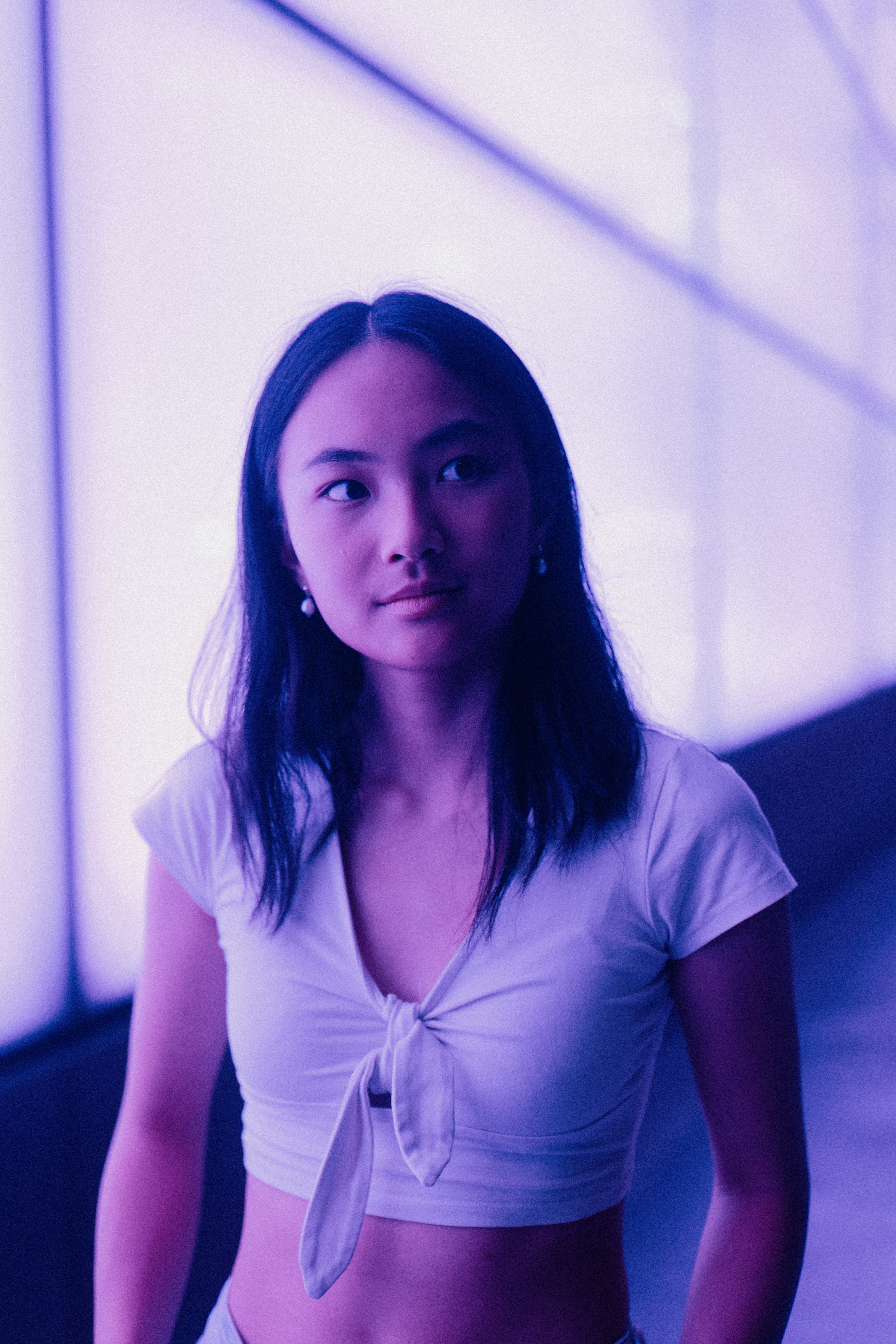 This photoshoot centres on the colour green — both in it's organic form through trees and greenery, and in it's inorganic form on the structures around us as well as its contrast and connection to humanity through the use of it's off-complimentary colour, purple in Faye's hair.